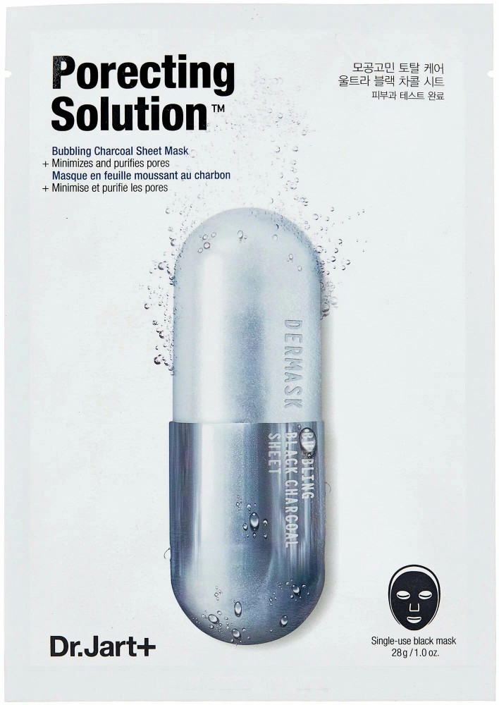 Кислородная маска для сужения пор Dr.Jart+ Porecting Solution с черным углем прекрасно очищает поры от различных загрязнений и кожного сала, мягко отшелушивает мертвые клетки кожи и ускоряет регенерацию, нормализует кислотно-щелочной баланс и абсорбирует излишки себума. Растительные компоненты, входящие в состав маски, успокаивают, снимают покраснения, увлажняют и способствуют сужению пор.