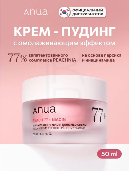 Anua Интенсивный крем-пудинг для гладкой и сияющей кожи «Peach 77% Niacin Enriched Cream»новинка