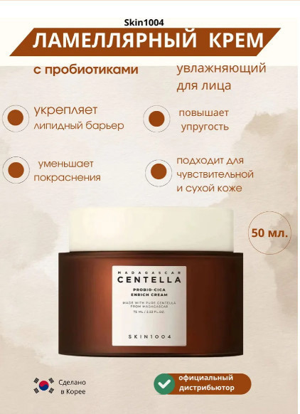 Интенсивный ламеллярный крем для лица с пробиотиками «Probio-Cica Enrich Cream» | Madagascar Centella | Skin1004