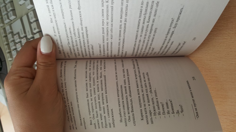 Книга чудесная. Читается легко, диалоги просто прекрасные, в них каждый герой раскрывается постепенно, с юмором. Обложка на ощупь как-будто парафином обработана (это не так конечно, но по тактильным ощущениям напоминает). Внутри да, не удобно, но я часто читаю книги в мягкой обложке, мне их удобнее с собой носить, и часто вижу подобные короткие поля.