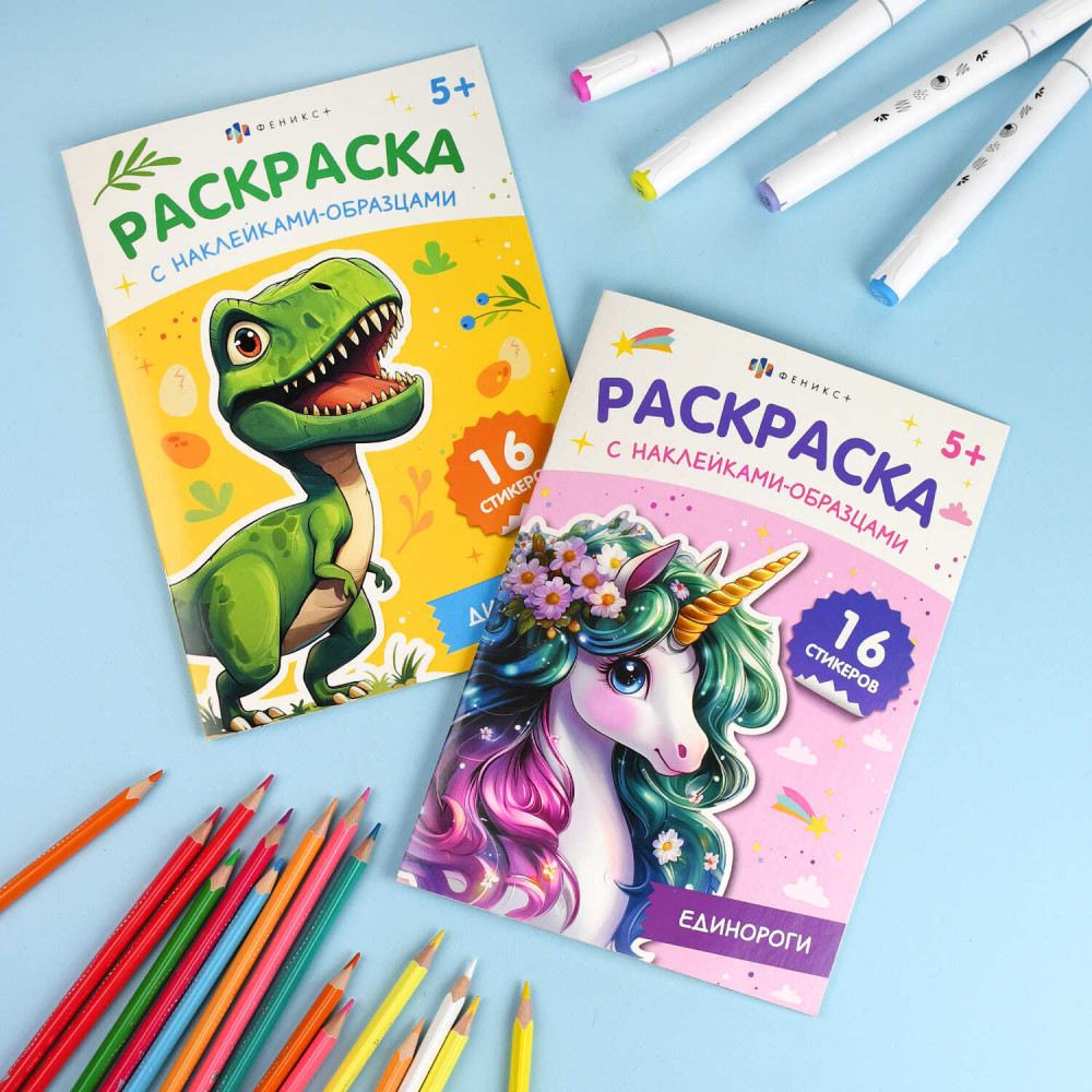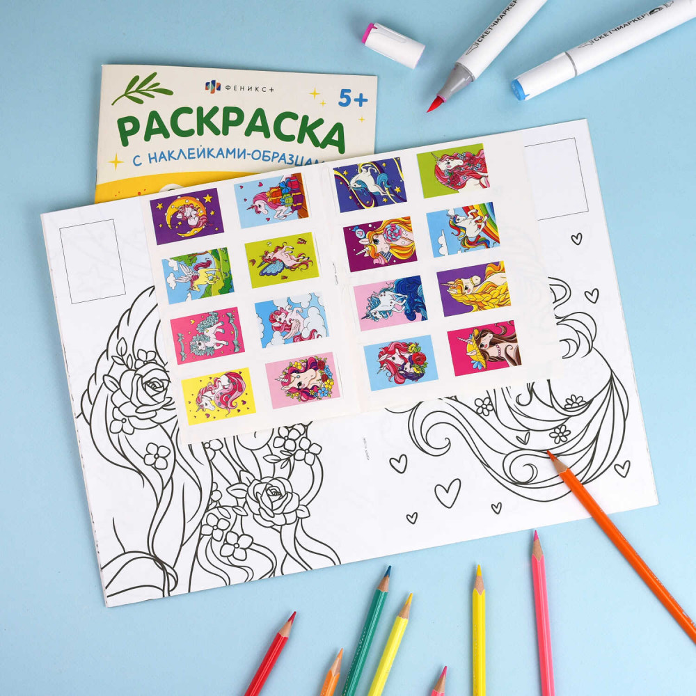 Феникс + Раскраска с наклейками-образцами. Единороги-25%