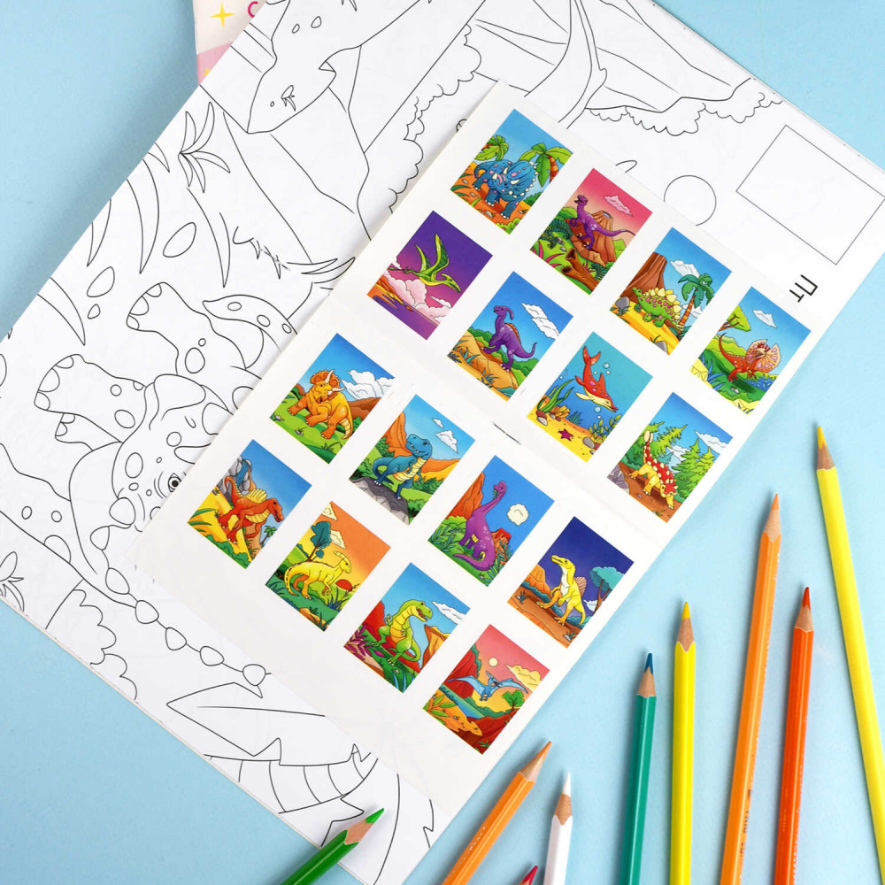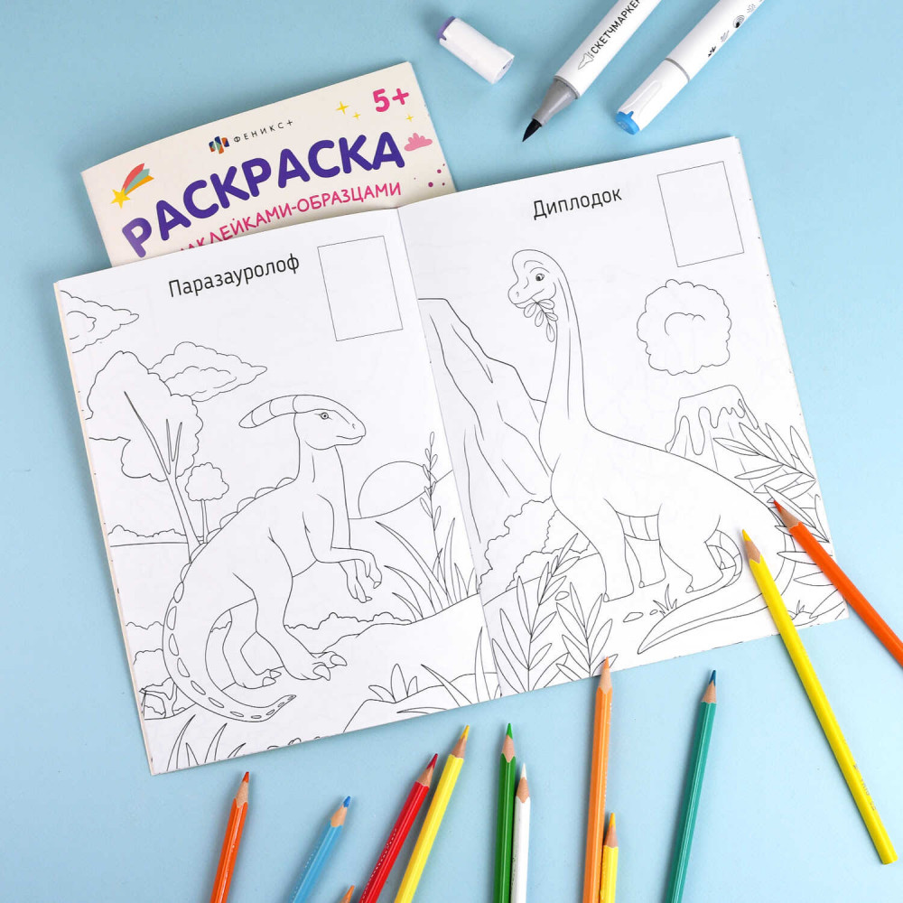 Феникс + Раскраска с наклейками-образцами. Динозавры-25%
