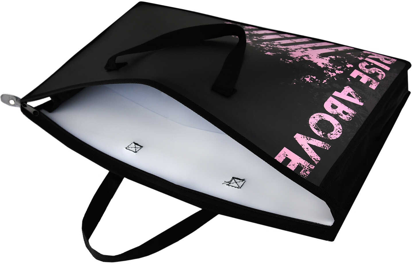 Серия: Дерзкий розовый Папка для чертежей и рисунков предназначена для хранения чертежей, рисунков и прочих бумаг с максимальным форматом А3, выполнена из прочного пластика. Папка содержит одно вместительное отделение. Надежная застежка-молния обеспечивает максимальный комфорт в использовании изделия, позволяя быстро открыть и закрыть папку. Папка снабжена двумя текстильными ручками для переноски, регулируемых по длине. Есть внутренний ПВХ карман. |