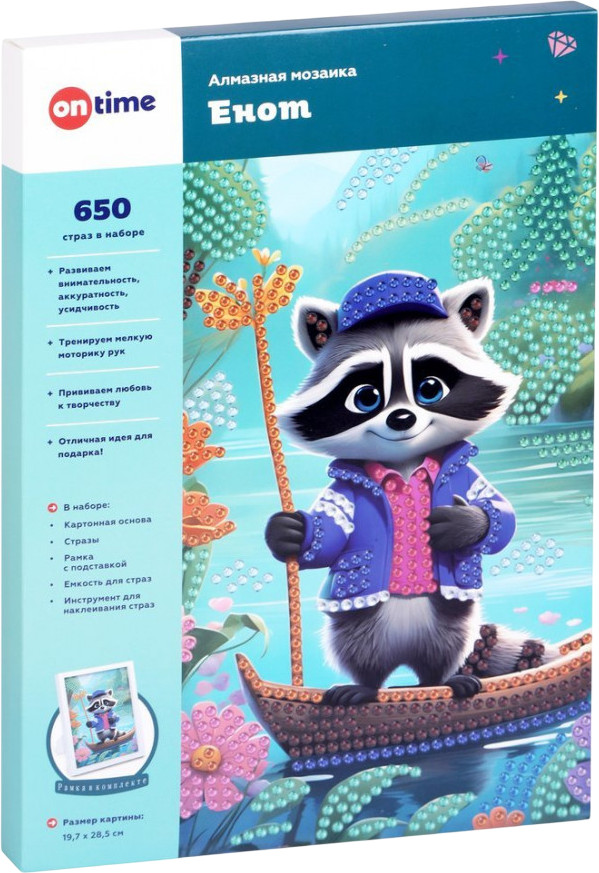 Алмазная мозаика «Енот» включает 650 сверкающих страз в одном наборе! Такой увлекательный творческий процесс, как выкладывание алмазной мозаики, поможет развить внимательность, аккуратность и усидчивость, а заодно потренировать мелкую моторику рук. Ребенку предстоит перенести стразы при помощи стилуса на картонную основу по заданной схеме. Готовая картина с переливающимися на свету стразами украсит интерьер любой детской комнаты! |