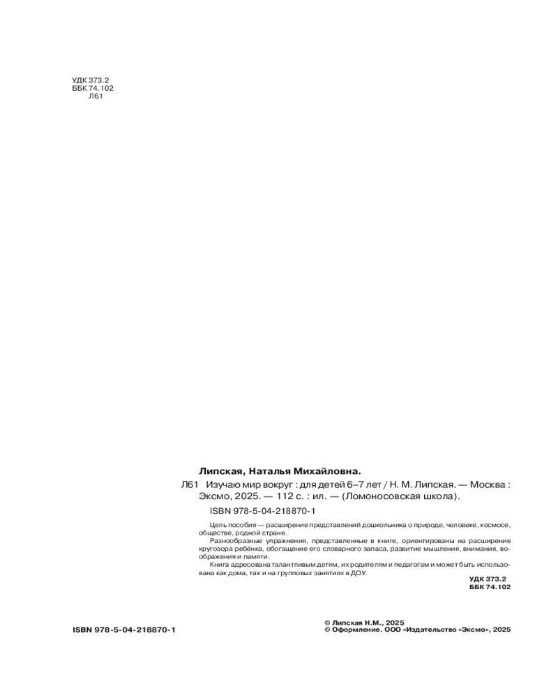 | Изучаю мир вокруг: для детей 6-7 лет Липская Наталья Михайловна +67 (бонусов)