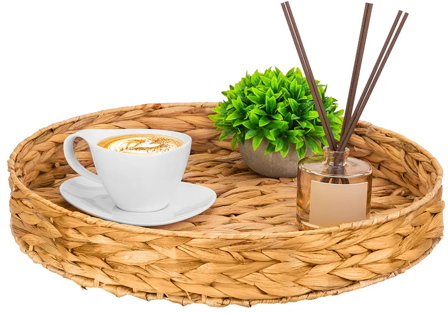 Складной журнальный столик 50×50×51 см от бренда Elcasa добавит природной гармонии домашнему интерьеру и позволит создать уютный уголок в квартире или на даче. Подойдёт в роли кофейного, балконного или для украшения любого пространства в доме. Размер столешницы 47×47×7 см, её внутренний диаметр — 42 см. Поверхность стола представляет собой прочное плетение из сушёных стеблей и листьев водного гиацинта. Это экологичный материал, устойчивый к выгоранию на солнце. Ножки выполнены из металла с пудровым покрытием. Благодаря прочному металлическому каркасу мебель имеет надежную конструкцию и выдерживает нагрузку до 15 кг. Столешница круглой формы съёмная, её можно использовать отдельно как сервировочный поднос для подачи чая, кофе или создания интерьерных композиций в комнате или на кухне. Она имеет бортики, что позволяет устойчиво разместить посуду, книги и любые другие предметы. |