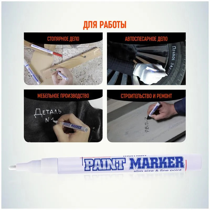Маркер-краска MunHwa — профессиональный лаковый маркер на нитрооснове. Paint Marker MunHwa пишет на всех типах поверхностей: металл, дерево, резина, бетон, стекло, кожа. Paint Marker подходит для реставрации дефектов на бытовой технике, обуви, кузове автомобиля, а также надписей на каменных плитах. Маркер-краска MunHwa имеет широкое применения в дизайне, декорировании и оформлении. Корпус маркера изготовлен из прочного алюминия. Клапанный механизм пишущего узла исключает растекание и разбрызгивание краски, преждевременное пересыхание маркера, срок годности 5 лет. Благодаря высококачественным чернилам, краска ложиться на поверхность равномерным и однородным слоем, полностью закрашивая обрабатываемую поверхность, быстро сохнет. После высыхания, надписи обладают свето и водостойкостью, термостойкостью, устойчивостью к механическим воздействиям.