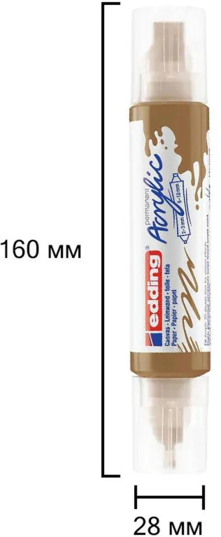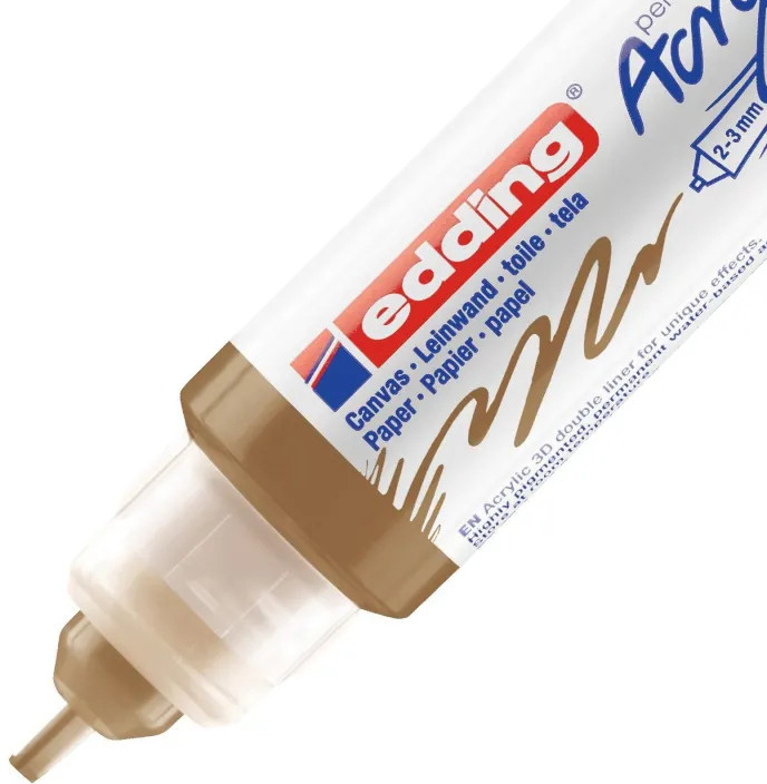 Маркер акриловый Edding 3D 5400/924 двухсторонний золотистый (толщина линии 2-10 мм). Двусторонний 3D-маркер позволяет создавать настоящие объёмные рисунки. Слегка надавите на корпус — и волшебство начинается! Сильнее нажим — объёмнее линия. Двусторонняя трубка имеет два сопла с шириной хода 2-3 мм и 5-10 мм. 3D-маркер Edding 5400 — яркий представитель акриловой линейки Edding. Акриловые маркеры Edding — целый набор инструментов для живописи. Чернила содержат высокопигментированную светостойкую и перманентную акриловую краску на водной основе. Созданы для рисования как на бумаге или картоне, так и на холсте. Вы получите эффект настоящих красок, но в более удобной форме маркера.
