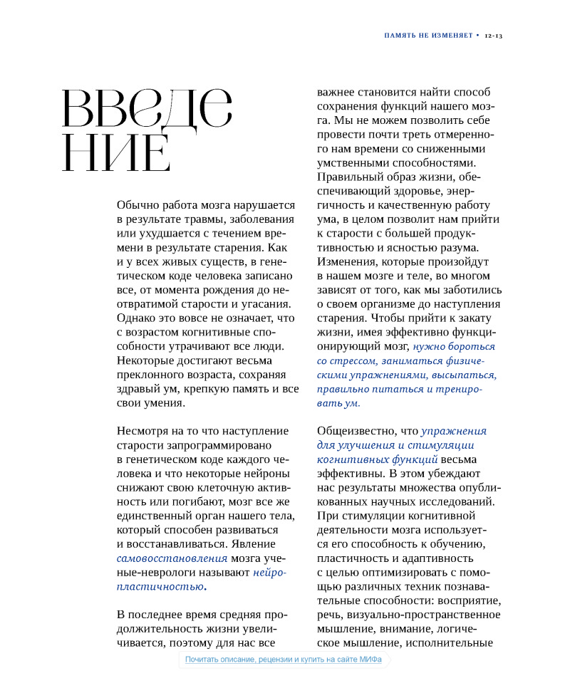 Неправда, что с возрастом память начнет вас подводить. Человеческий мозг обладает огромной нейропластичностью. Хотя некоторые нейроны и умирают, другие реорганизуются и выполняют их функции. Но для этого их необходимо стимулировать.