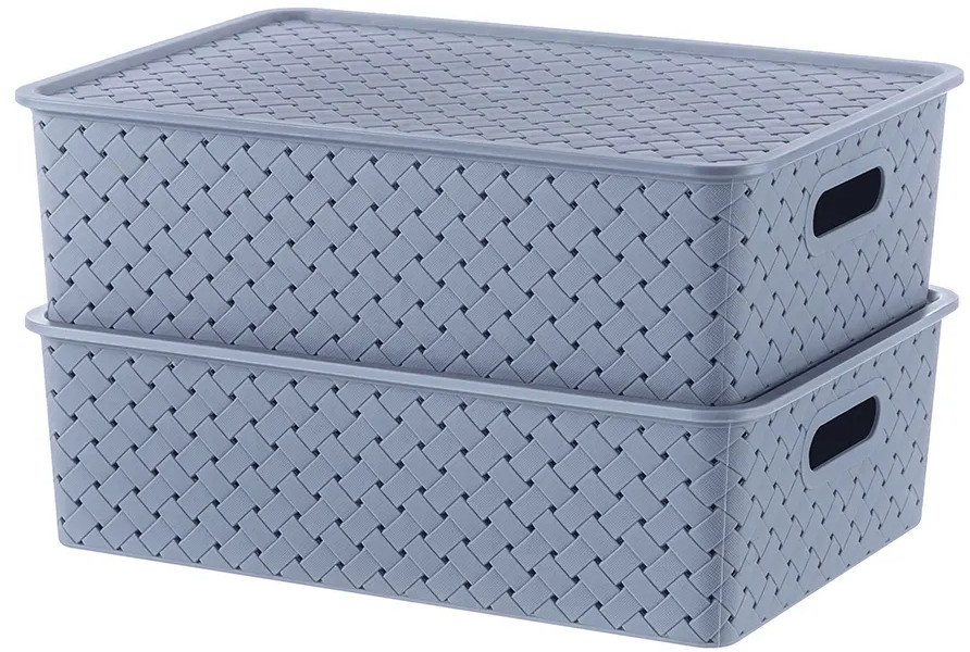 Используйте ёмкость для косметики, бытовой химии и моющих средств как в шкафчике, так и в любом пространстве. Специальное плетение с дырочками позволяет воздуху проникать внутрь и не даёт продуктам испортиться от недостатка кислорода. Корзина может быть использована для белья, полотенец, одежды и хранения различных мелочей. Такой короб можно поставить под раковину в ванной, возле стиральной машины или на полку. Используйте коробочку в детской комнате как ящик для игрушек. Храните в нём садовые инструменты или используйте в гараже под различный инвентарь. Подойдёт для компактной перевозки вещей в багажнике машины или хранения на складе. Крышка надёжно защитит содержимое от попадания грязи и пыли.