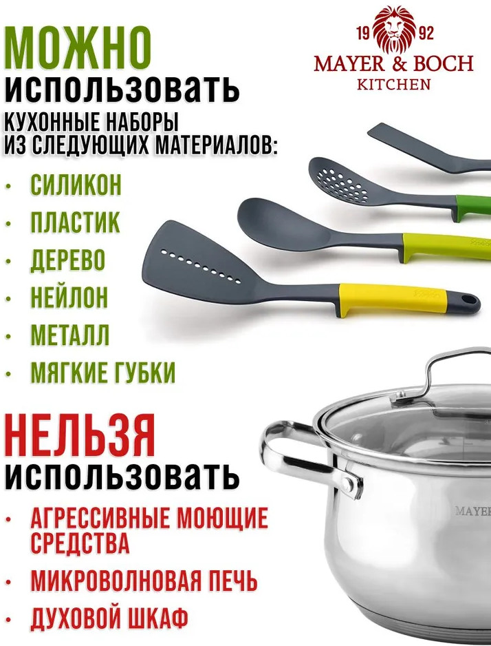 Многофункциональная кастрюля с крышкой Mayer & Boch — ваш незаменимый помощник на кухне, созданный для того, чтобы процесс приготовления пищи приносил только удовольствие. Изделие выполнено из нержавеющей стали, которое обеспечивает надёжность и гарантирует долгий срок службы — как раз то, что нужно для вашей кухни! Крышка изготовлена из жаростойкого стекла и оснащена удобной ручкой, отверстием для выпуска пара и металлическим ободком. Она позволяет контролировать процесс готовки, не снимая ее, что сохраняет тепло и предотвращает нежелательные брызги. Вы сможете наблюдать за тем, как кипит суп или тушится рагу, не беспокоясь о потере температуры.