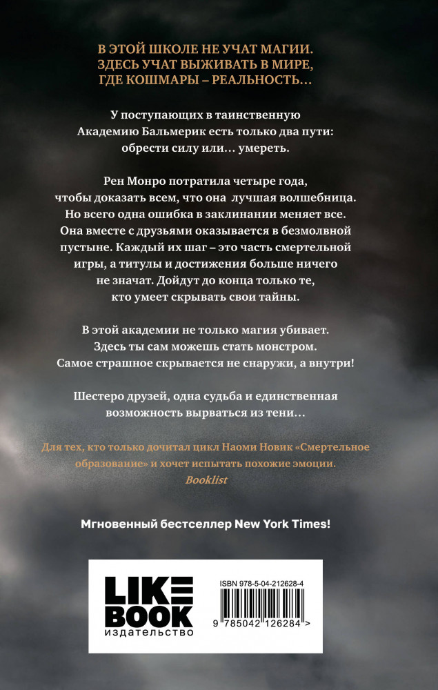Серия: Young Adult. Смертельная академия В этой школе не учат магии. Здесь учат выживать в мире, где кошмары реальны... У поступающих в таинственную Академию Бальмерик есть только два пути: обрести силу или... умереть. Здесь не учат волшебству — здесь учат выживать среди темных секретов. Рен Монро потратила четыре года, чтобы доказать всем, что она лучшая волшебница. Но всего одна ошибка в заклинании меняет все. Она вместе с друзьями оказывается в безмолвной пустыне. Каждый их шаг — это часть смертельной игры, а титулы и достижения больше ничего не значат. Дойдут до конца только те, кто умеет скрывать свои тайны. Шестеро друзей, одна судьба и единственная возможность вырваться из тени... |