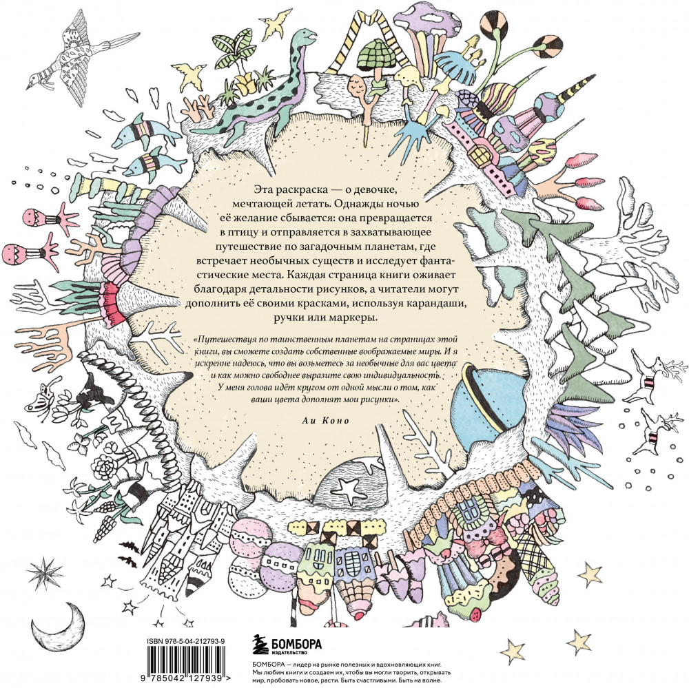 💳 Оплатить за товар можно при получении 🇰🇿 Есть бесплатная доставка по Казахстану 🎁 Копите бонусы с каждой покупки Серия: Азиатские раскраски. Бестселлеры Японии, Кореи и Китая Новая сюжетная раскраска от японской художницы Аи Коно расскажет историю о девочке, превратившейся в птицу и облетевшей пять удивительных планет. Вместе с ней вы посетите планету, полностью покрытую лесами, и ту, на которой вечная зима, а также сможете вкусно провести время на Планете сладостей! Вместе с ней вы насладитесь красотой созданных автором миров, узнаете, чем закончится путешествие по этой волшебной вселенной, и раскрасите каждую, даже самую крохотную деталь. Смело воплощайте свои фантазии на бумаге: плотные листы позволят использовать любимые материалы для творчества без опасности ненароком испортить следующую иллюстрацию. |