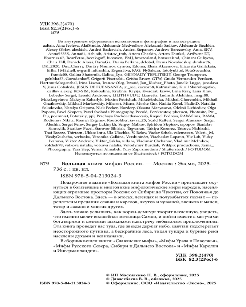 Большая книга мифов РоссииВ данный момент этот товар отсутствует в продаже. Возможно, у нас найдется аналогичный или похожий товар здесь. Серия: Мифы мира. Большие книги От берегов Северного Ледовитого океана до поволжских степей, от белых ночей Карелии и Старой Ладоги до Чукотки, первой встречающей рассвет на планете! Россия — страна невероятных просторов и множества народов, каждый из которых вплетает свой узор в большое культурное полотно. Куда бы вы ни отправились, везде вас встретят удивительные местные традиции, старинные предания, сказки и другие сокровища народного творчества, в которых заповедные пейзажи оживают и наполняются магией, а бесстрашные герои из легенд вновь и вновь отправляются на славные подвиги. «Большая книга мифов России» познакомит вас с мифологией и фольклором народов нашей страны: русских, татар, чувашей, марийцев, карелов, саамов, вепсов, якутов, эвенков, хантов, манси, коми, ненцев, чукчей и многих других. В подарочном издании собраны четыре бестселлера серии «Мифы мира. Самые сказочные истории человечества»: |