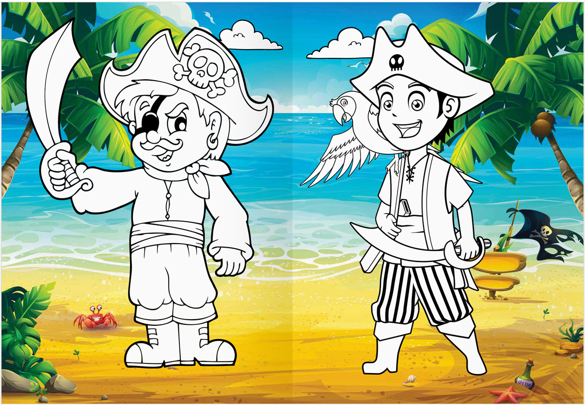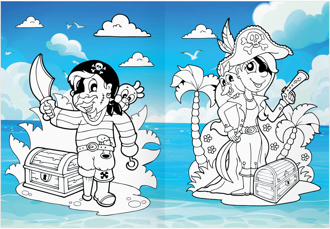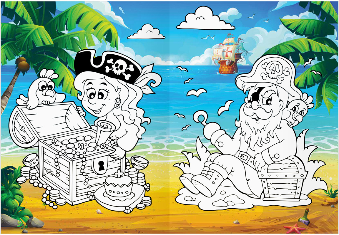 Три совы Остров сокровищ. Раскраска с цветным фоном+15