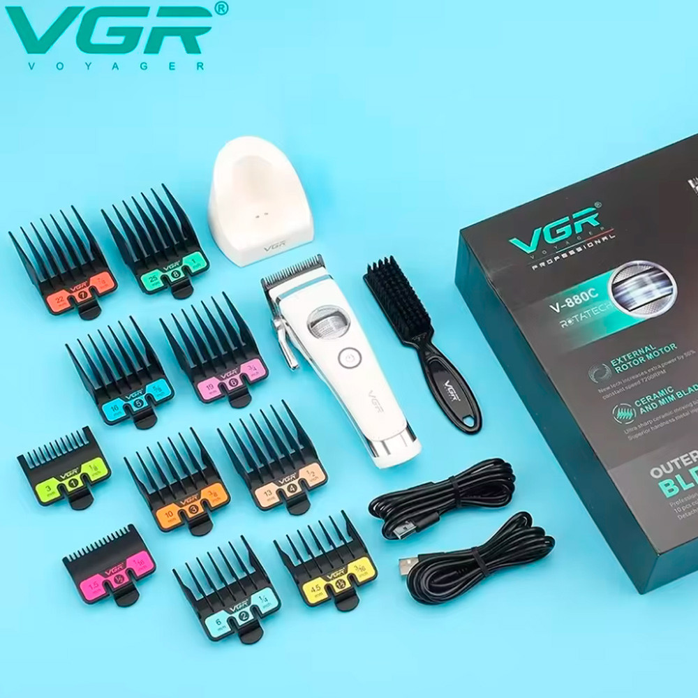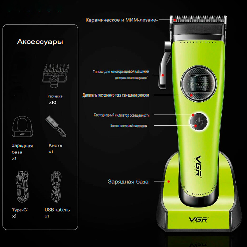Профессиональная машинка для стрижки волос VGR V-880C в стильном зелёном корпусе — это мощный, надёжный и удобный инструмент как для салонного, так и для домашнего использования. Оснащённая бесщеточным двигателем с внешним ротором и скоростью 7200 об/мин, она обеспечивает стабильную и тихую работу с минимальной вибрацией и эффективным охлаждением. Прецизионные лезвия из керамики и металла (MIM) сочетают остроту, износостойкость и устойчивость к коррозии, обеспечивая чистый срез без зацепок даже при длительном использовании. Благодаря встроенному литий-ионному аккумулятору ёмкостью 2500 мАч машинка работает до 150 минут без подзарядки, а зарядная база обеспечивает удобное и аккуратное хранение. Регулируемый рычаг позволяет точно настраивать длину среза от 0,8 до 2 мм без смены насадок, а 10 направляющих гребней в комплекте (1,5-25 мм) расширяют возможности укладки. Универсальное напряжение (100-240 В) и гарантия на 1 год делают VGR V-880C отличным выбором для тех, кто ценит качество, комфорт и профессиональный результат.