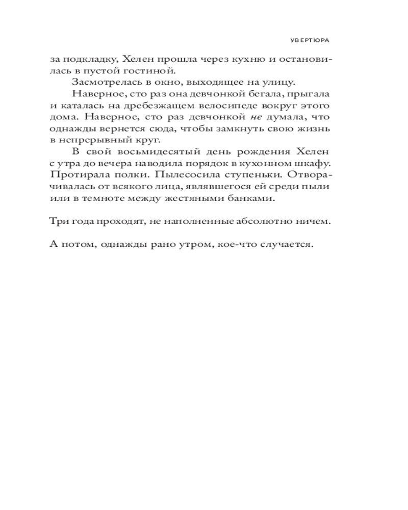 Серия: Corpus. После смерти мужа и сына Хелен Картрайт, 60 лет прожившая за границей, возвращается в Англию, в городок, где родилась. Она мечтает лишь об одном — умереть поскорее, никому не доставив хлопот. Дни тянутся один за другим, похожие, как капли воды. Но как-то раз, зимним вечером, происходит встреча, которая оказывается началом необычного приключения. И одинокая вдова совершенно неожиданно находит причину жить дальше. |