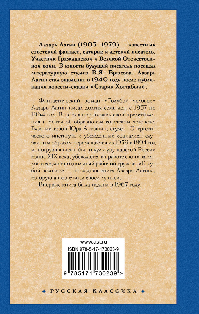 Серия: Русская классика Фантастический роман «Голубой человек» Лазарь Лагин писал долгих семь лет, с 1957 по 1964 год. В него автор вложил свои представления и мечты об образцовом советском человеке. |
