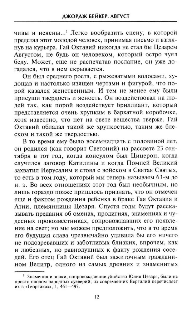Серия: Великие правители Джордж Бейкер предлагает увлекательную и наиболее полную из существующих биографий Гая Октавия, усыновленного Цезарем и поэтому получившего имя Гай Юлий Цезарь Октавиан Август, ставшего первым императором Рима, по возможности избегая предвзятых оценок и непроверенных мнений. Бейкер использует не только свидетельства великих историков древности, но и достижения современной научной мысли. В книге воссозданы реалии политики, экономики и быта Древнего Рима. |