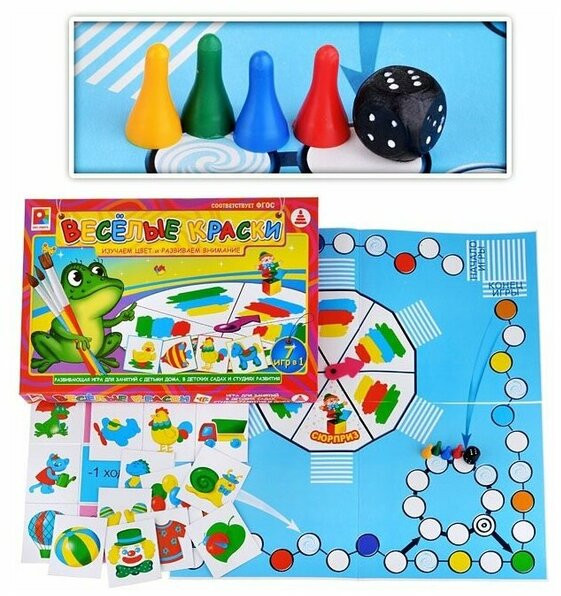 Серия: Твоя игра Настольная развивающая игра «Веселые краски» выполнена в ярком цветовом решении, поэтому подарит малышам позитивные эмоции и хорошее настроение. Передвигаясь по красочно исполненному игровому полю, дети закрепят свои знания об основных цветах, улучшат логическое мышление и потренируют внимание и мелкую моторику рук. |