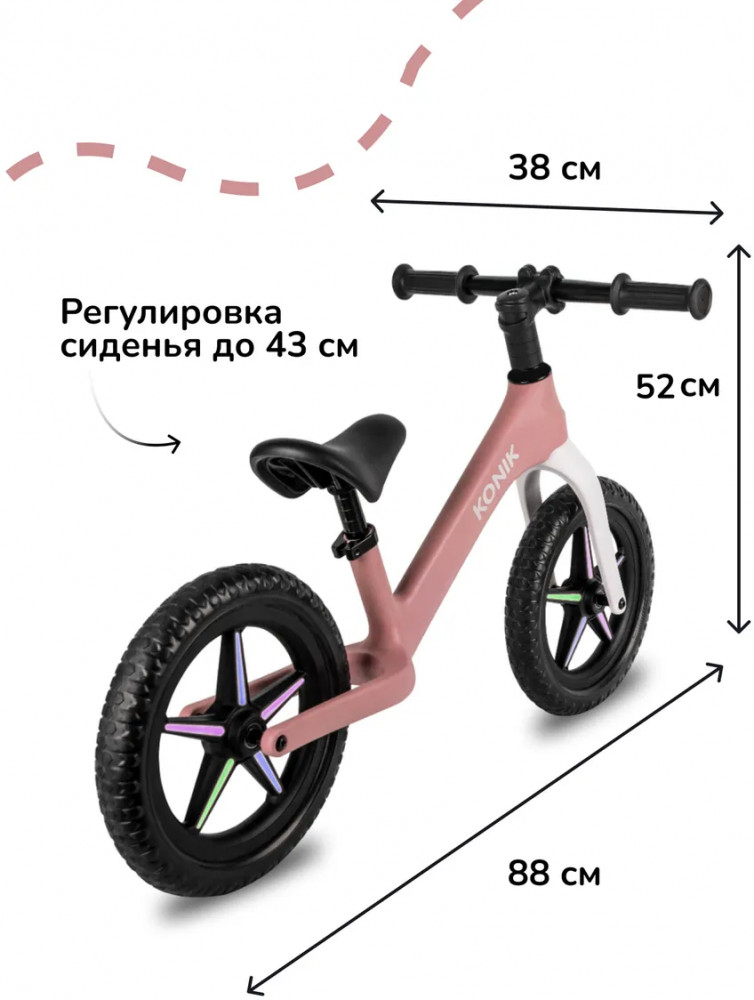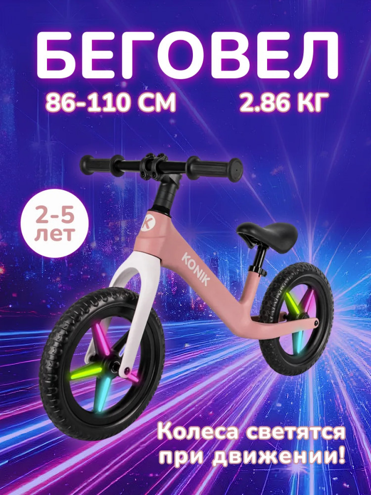 Беговелы Konik Go! — первые шаги к приключениям! Знакомьтесь: беговел Konik Go! для детей от 2 до 5 лет. Беспедальный велосипед подойдёт для ребёнка ростом 86-110 см и весом до 30 кг. Беговел для малыша — это идеальный подарок для мальчиков или девочек, которые по возрасту ещё не готовы пересесть на велосипед. Благодаря беговелу переход на полноценный велосипед оказывается максимально быстрым и безболезненным.