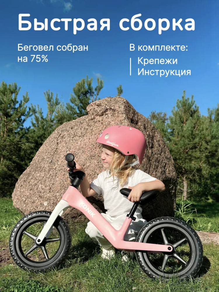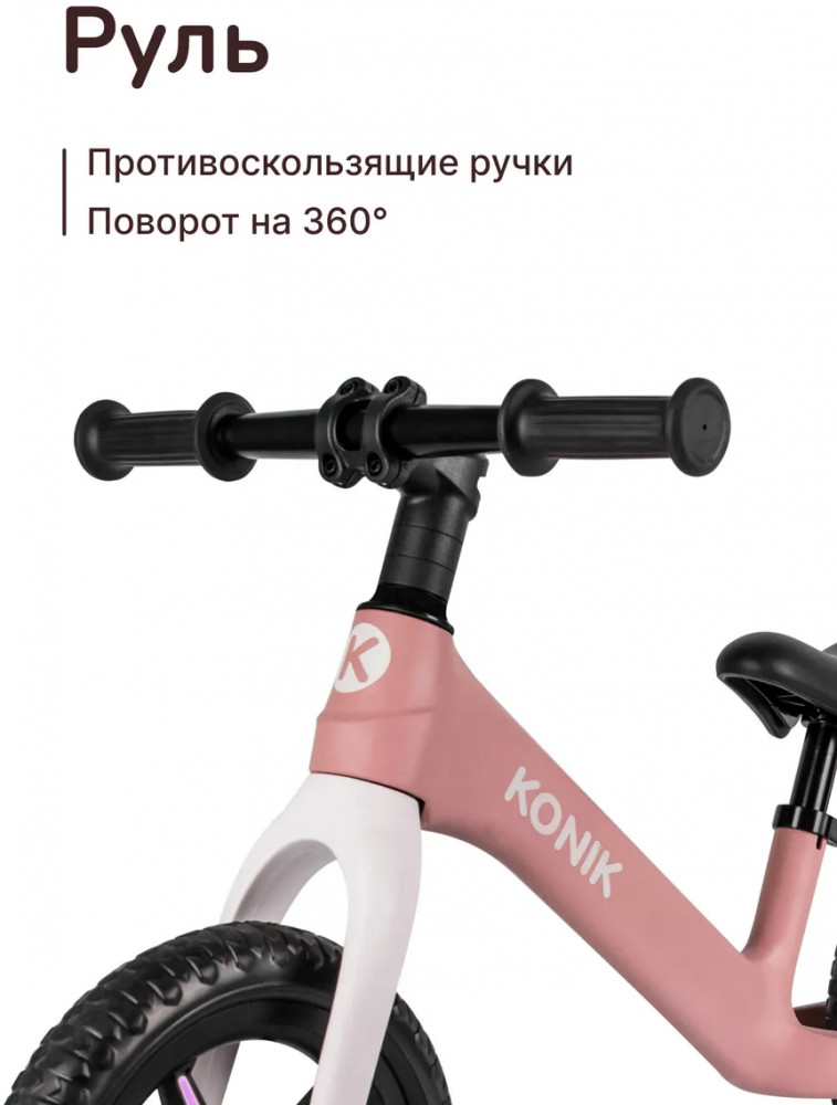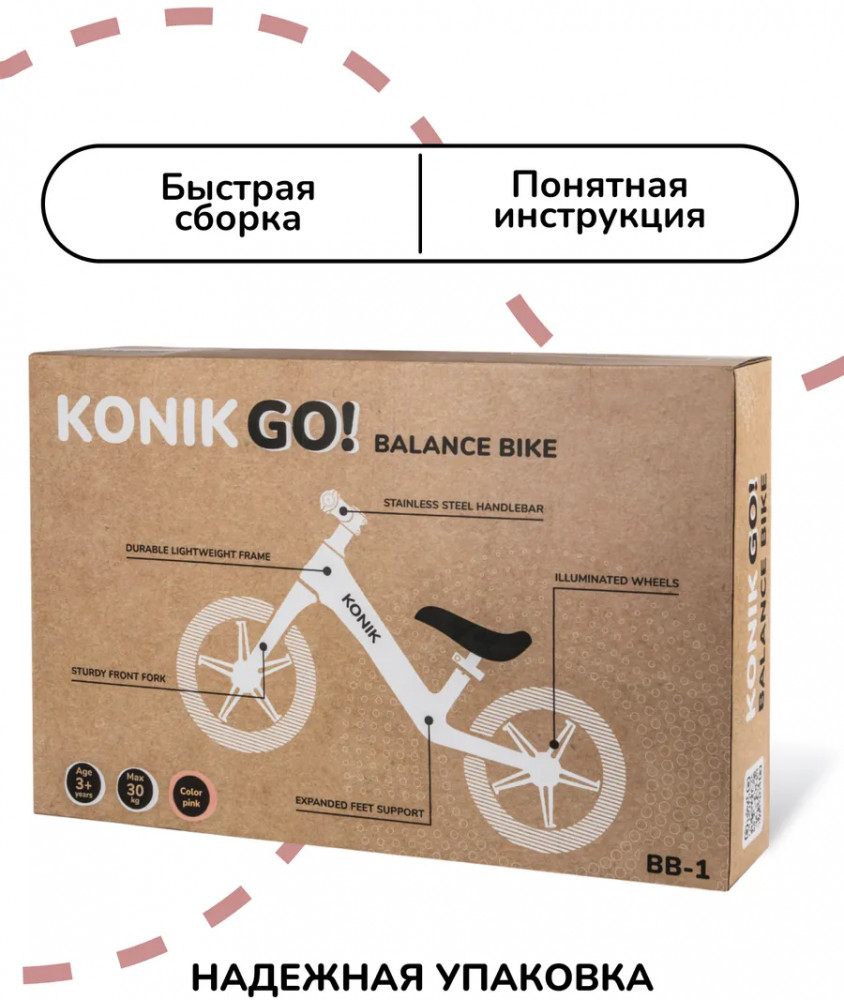 • простой в управлении — беговел Коник Го! это сочетание безопасности, стиля и функциональности; он улучшает координацию и баланс, помогает научиться кататься без помощи родителей и стимулирует детей заниматься спортом и вести активный образ жизни.