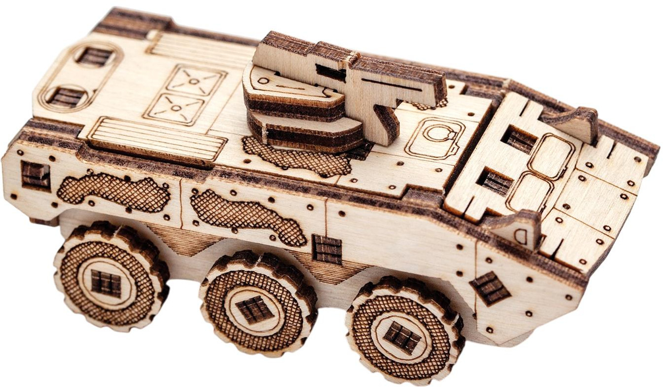 Сборная модель военной техники будет прекрасным подарком для тех, кто интересуется историей, техникой или просто ищет новый и интересный способ отдохнуть. Сборка деревянного конструктора из фанеры — это процесс, который доставляет удовольствие и развивает творческие способности, такие как пространственное мышление, логика и моторика. Размер конструктора: 74×31×32 мм.