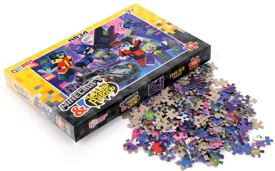 Классические пазлы в коробке «По мотивам Minecraft & Чёрный рыцарь» ТМ «Умные игры» — отличная развивающая игра для детей. Данный пазл представляет собой игру-головоломку, в которой необходимо в правильной последовательности соединить элементы друг с другом и получить в результате красочную картинку с изображением супергероев и злодеев, выполненных в стилистике популярной видеоигры. Сборка пазлов — это очень увлекательное занятие, в процессе которого дети учатся искать и совмещать детали разной формы, с каждым разом делая это всё лучше и быстрее. |
