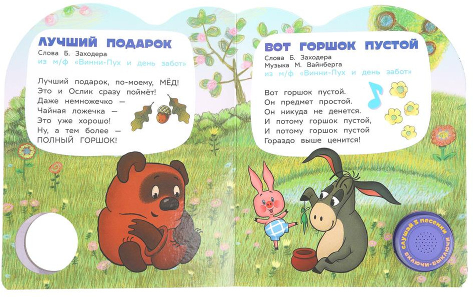 💳 Оплатить за товар можно при получении 🇰🇿 Есть бесплатная доставка по Казахстану 🎁 Копите бонусы с каждой покупки Серия: Союзмультфильм Музыкальная книга «Любимые мультгерои» ТМ «УМка» станет прекрасным подарком для маленьких поклонников добрых мультфильмов студии «Союзмультфильм». Ребёнок с удовольствием будет листать плотные страницы, рассматривать красочные картинки с изображением героев любимых м/ф и, конечно, нажимать на кнопку и слушать весёлые песенки. Малыш легко освоит включение звука: по нажатию на кнопку песенка включится, при втором нажатии выключится, при третьем — заиграет следующая композиция. Благодаря компактному размеру книгу удобно взять с собой в дорогу. Занятия с музыкальной книгой ТМ «УМка» развивают слуховое восприятие и музыкальный слух, фантазию, образное мышление, память и навык чтения. |