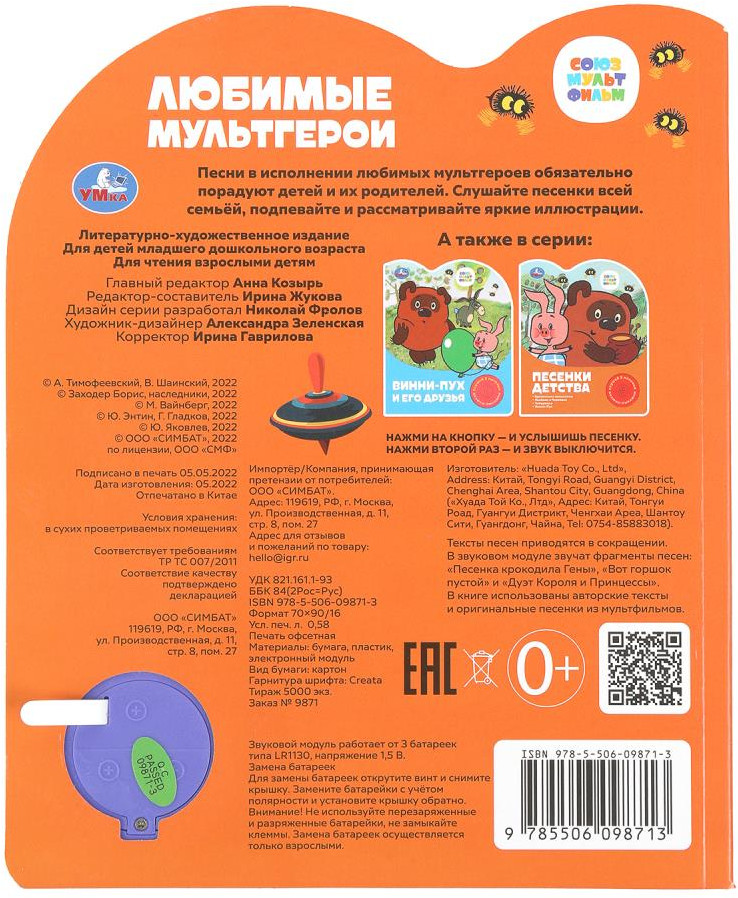 УМка Книга музыкальная «Любимые мультгерои»-30% +107