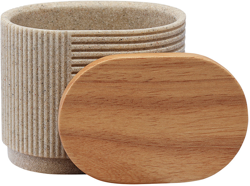 Банка для хранения Dune — отличное решение для тех, кто любит сочетание базовых оттенков и необычных фактур. Вы можете хранить в ней средства гигиены и другие предметы, а также использовать в качестве декоративного элемента.