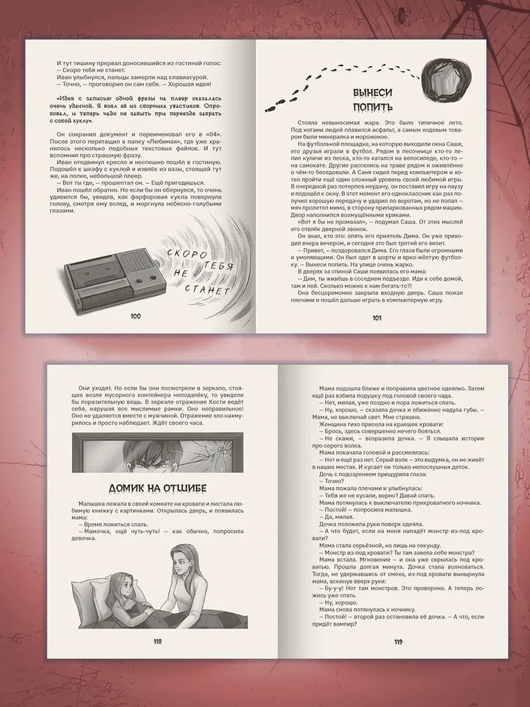 💳 Оплатить за товар можно при получении 🇰🇿 Есть бесплатная доставка по Казахстану 🎁 Копите бонусы с каждой покупки Серия: Детские ужастики В этот ужжжасный сборник вошли шокирующие и интригующие рассказы от К. Хотимченко и Е. Яшиной — современных молодёжных писателей. Сначала вы отправитесь в летний лагерь — прогулки на свежем воздухе, зарядка, вкусная еда, новые друзья... Только почему-то этот лагерь зовут жутким... А затем предлагаем вам познакомиться с говорящей куклой, мальчиком-призраком, милой вампиршей и другими интересными персонажами. Будет интересно, точно-точно! |