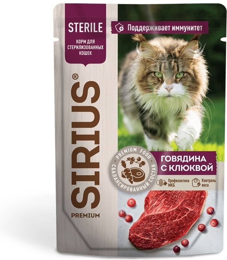 Sirius Набор паучей для кошек «Кусочки в соусе с говядиной и клюквой»