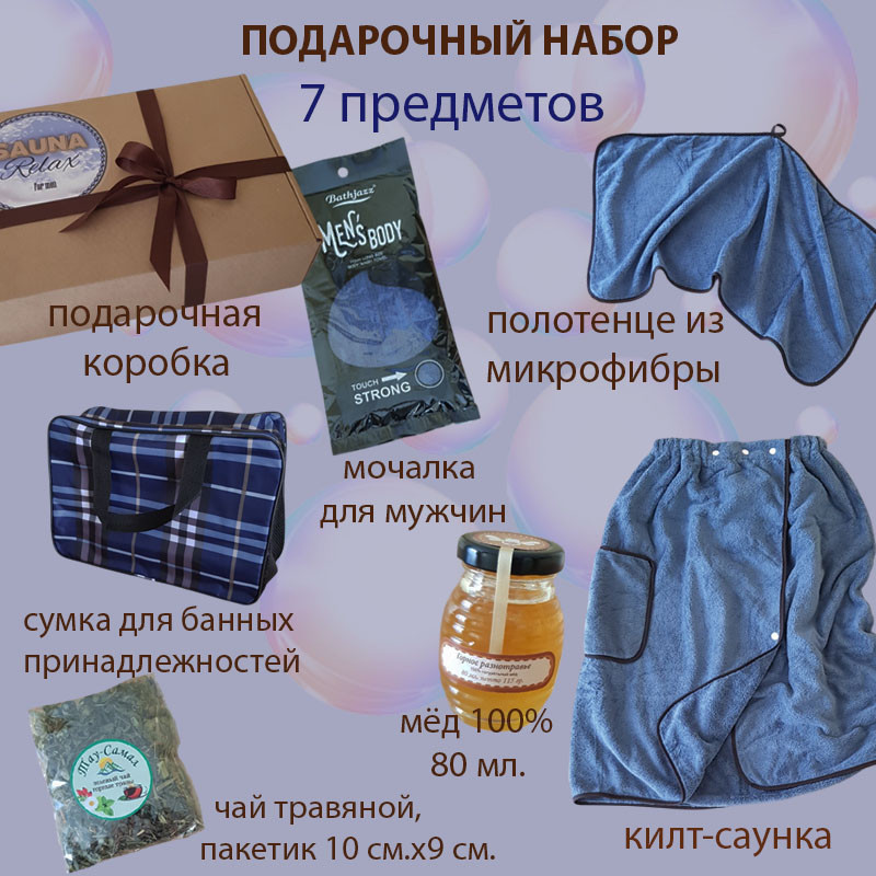Подарочный набор для мужчин предназначен не только для приятного времяпровождения в сауне или бане, но и всегда пригодится для повседневного домашнего использования. Ведь так удобно обернуться в мягкую саунку из микрофибры даже после душа. Саунка имеет регулируемый размер, благодаря растягивающейся резинке и нескольким кнопкам. В комплекте с саункой идёт полотенце, которое впитает лишнюю влагу после водных процедур. Будьте уверены, что такой комплект в своем арсенале захочет иметь любой мужчина! |