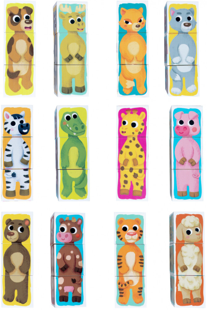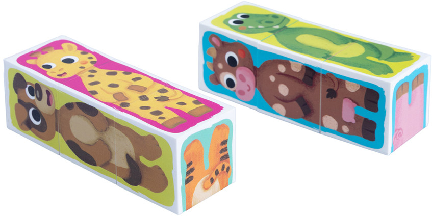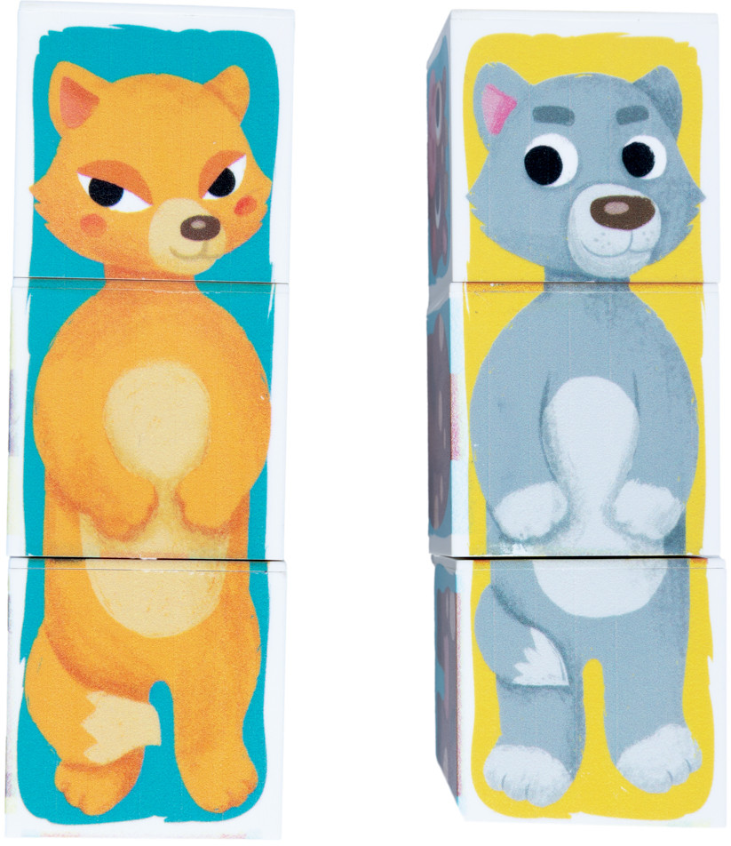 Собирать зверушек из трех кубиков — это так просто и увлекательно! Ребенок сможет ориентироваться по окрасу животного и цвету фона, чтобы создать правильный образ. А для тех, кто любит задачки посложнее, можно собрать персонажа с одной неправильной частью и предложить малышу найти и исправить ошибку. Но самое интересное начинается, когда ребенок дает волю своей фантазии! Смешивайте разные части тела, создавайте невероятных существ: голову коровы, туловище жирафа, задние ноги зебры — кто сказал, что так нельзя? В мире «Зверопутаницы» нет границ для творчества и воображения!