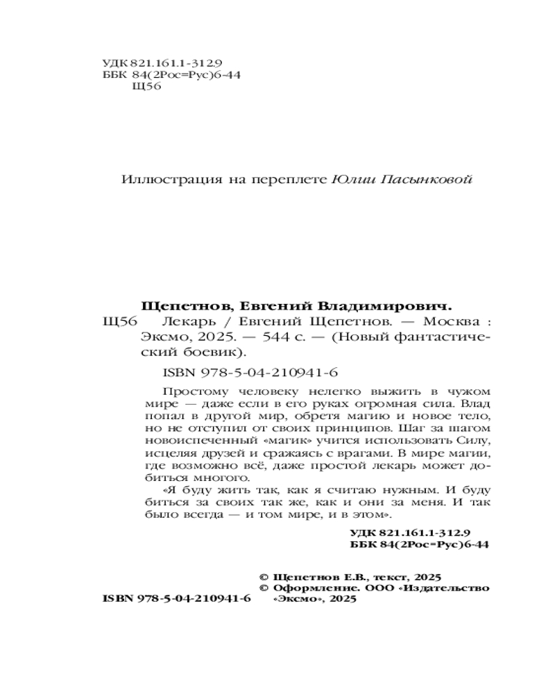 💳 Оплатить за товар можно при получении 🇰🇿 Есть бесплатная доставка по Казахстану 🎁 Копите бонусы с каждой покупки Серия: Новый фантастический боевик. Миры Евгения Щепетнова Простому человеку нелегко выжить в чужом мире — даже если в его руках огромная сила. Влад попал в другой мир, обретя магию и новое тело, но не отступил от своих принципов. Шаг за шагом новоиспеченный «магик» учится использовать Силу, исцеляя друзей и сражаясь с врагами. В мире магии, где возможно всё, даже простой лекарь может добиться многого. |