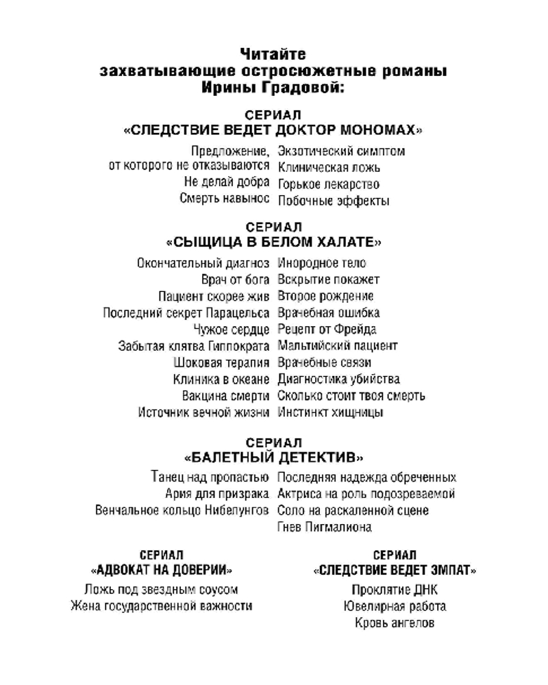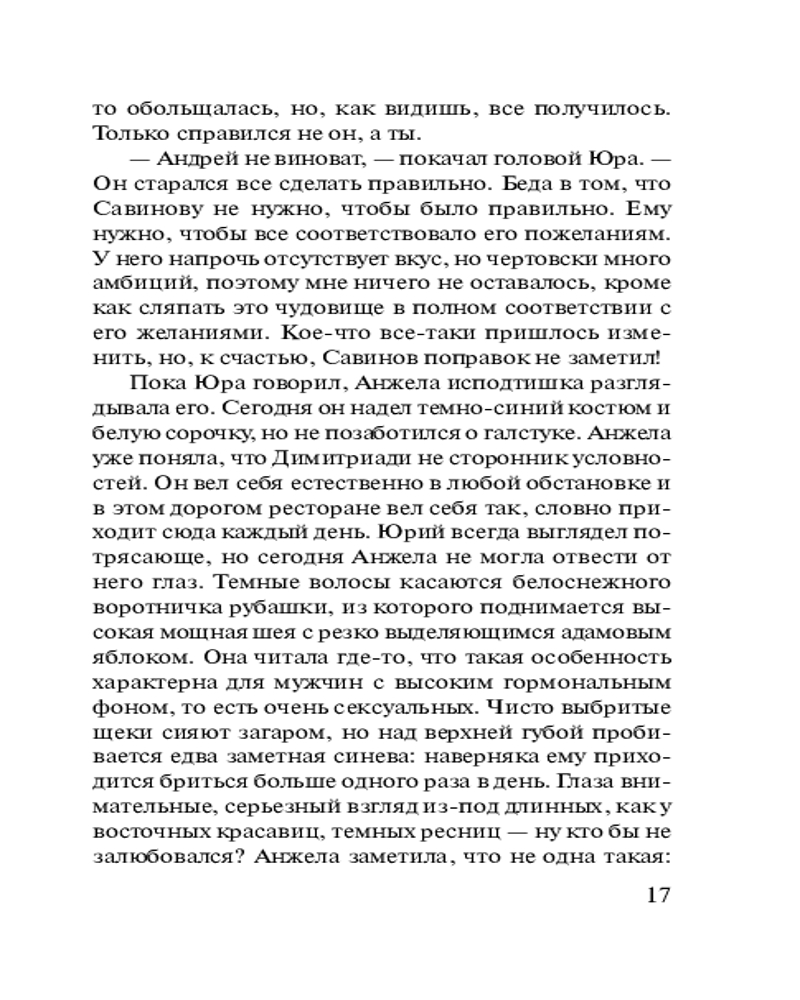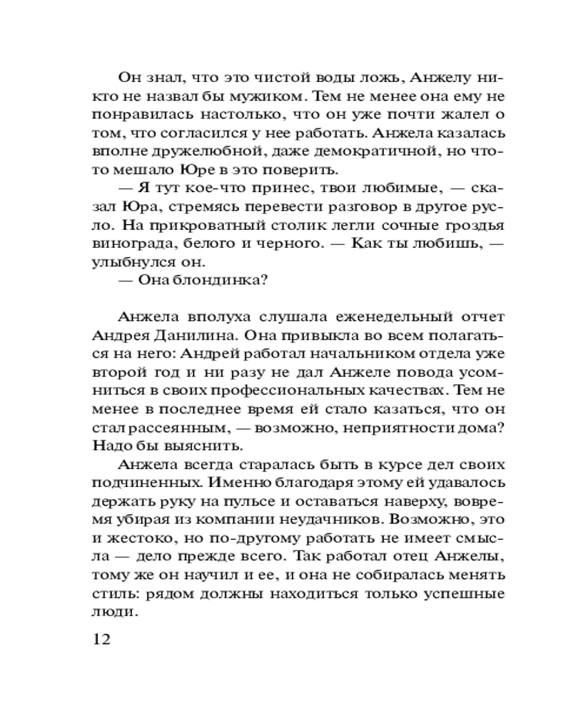 Серия: Кабинетный детектив. Новое оформление (обложка) Анжела всегда знала, что ей подвластен мир. Ее ума, таланта, хватки — всего, что она имела и достигла — достаточно, чтобы покорить любого мужчину и отбить самый важный контракт у конкурентов. Но однажды на собеседование в ее фирму приходит очередной соискатель, и женщина, способная повелевать стихиями, теряет власть над собой. Юрий ей не ровня, к тому же он младше на десять лет и прикован к постели смертельно больной жены. Хотя что могут значить эти мелочи, когда в жерле вулкана просыпается стихия? Эта страсть разрушит Анжелу, но кого еще она утянет за собой в воронку смерти? |