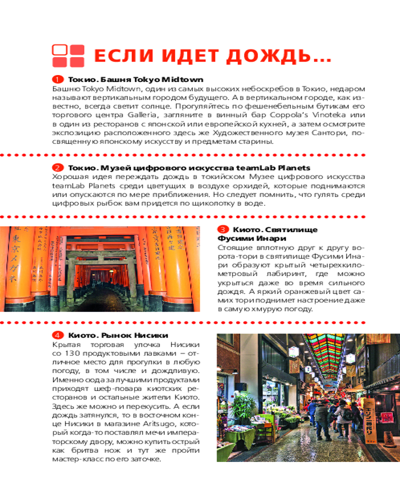 Япония. Токио, Осака, Киото, Камакура, Никко, Нара, Миядзима. ПутеводительВ данный момент этот товар отсутствует в продаже. Возможно, у нас найдется аналогичный или похожий товар здесь. Серия: Оранжевый гид (обложка) Удивительная богатая культура, тысячелетняя история и традиции, современные технологии и самобытность — все это Япония! Отправляйтесь в незабываемое путешествие по Стране Восходящего Солнца вместе с «Оранжевым гидом»! В нем содержится актуальная и полезная информация о главных городах страны, различные маршруты на любой вкус, подсказки, что делать, если идет дождь, или где искать лучшие смотровые площадки, а также множество полезных авторских советов. |