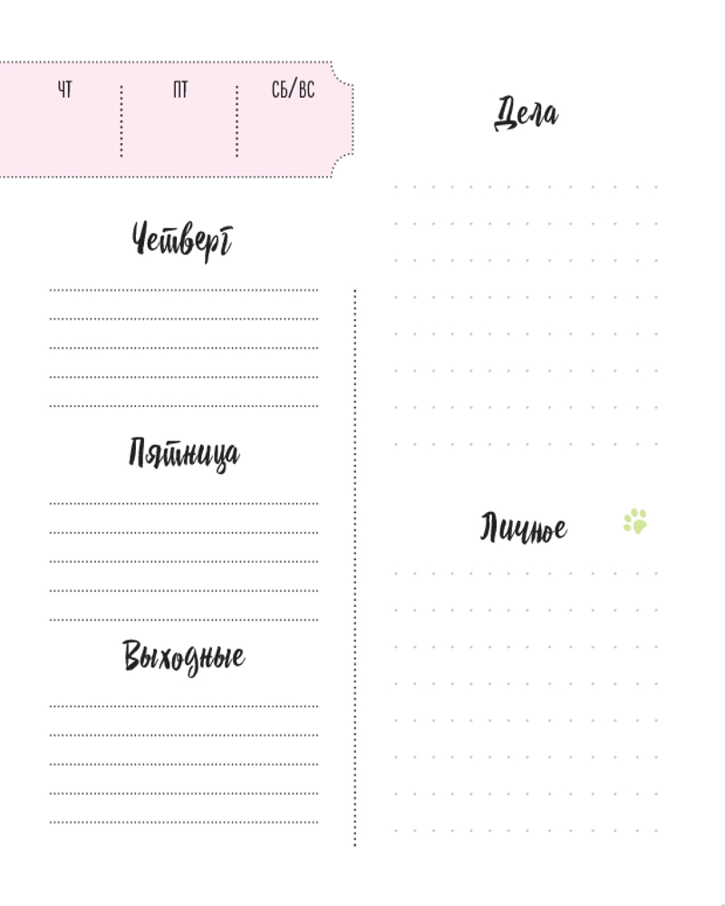 Серия: Ежедневники недатированные контентные Ежедневник для каждой дерзкой кисы, которая не боится показать коготки и свой характер! Удобный компактный формат позволит брать ежедневник куда угодно, а благодаря яркому оформлению вы точно захотите его заполнять каждый день! Записывайте все свои планы, выгружайте из мозга лишние мысли на специальных страничках. Живите на высоких вибрациях! |