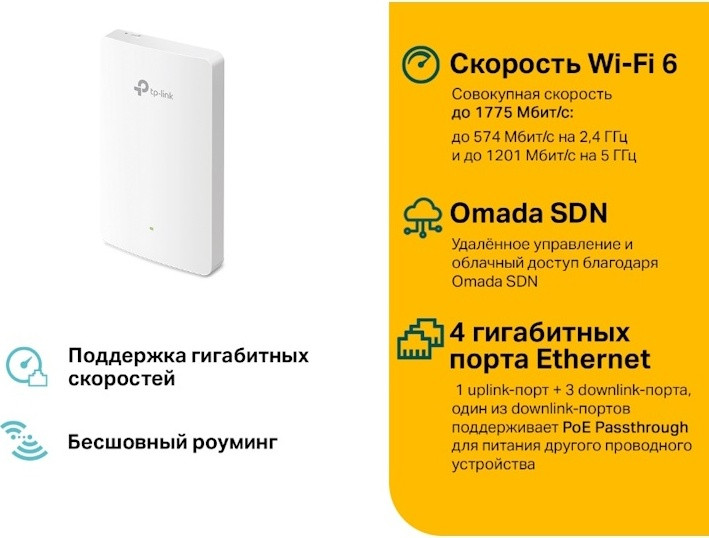 TP-Link Точка доступа Wi-Fi EAP615-WALLВ данный момент этот товар отсутствует в продаже. Возможно, у нас найдется аналогичный или похожий товар здесь. Точка доступа Wi-Fi — это современное решение для организации стабильного и высокоскоростного беспроводного подключения в любом помещении. Устройство расширяет зону покрытия сети, обеспечивая уверенный сигнал и надежное соединение для множества пользователей одновременно. Поддержка актуальных стандартов передачи данных гарантирует высокую пропускную способность и минимальные задержки, что особенно важно при потоковой передаче видео, видеоконференциях и онлайн-играх. Компактный и эргономичный дизайн позволяет легко разместить точку доступа в офисе, доме или общественных зонах, а удобные средства настройки и управления упрощают интеграцию в существующую сеть. |