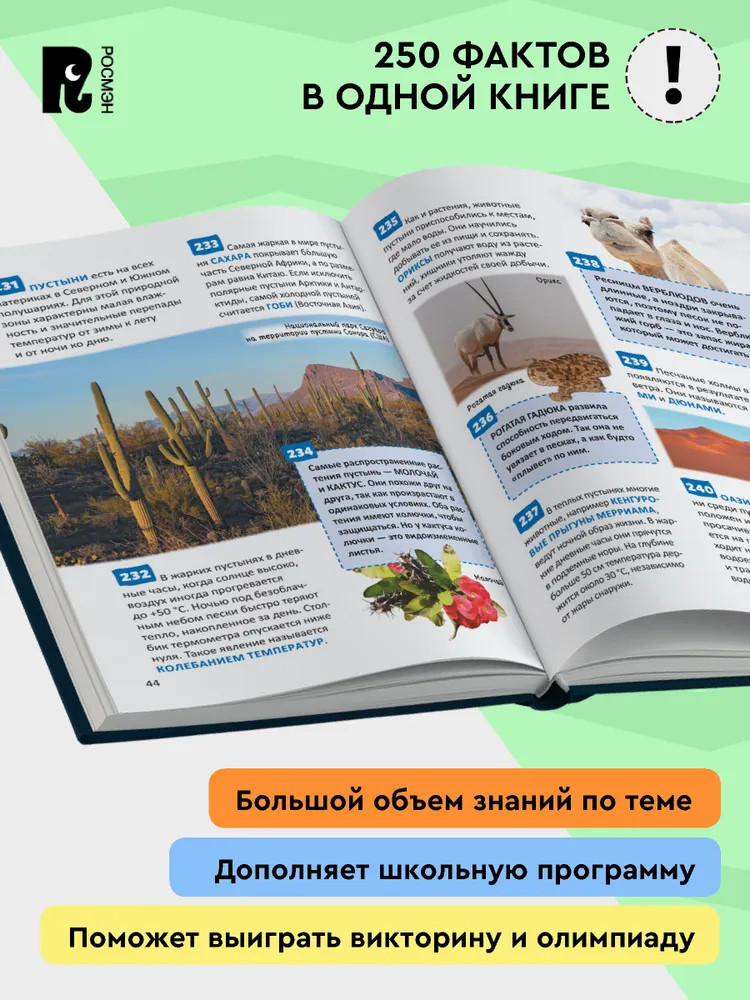 💳 Оплатить за товар можно при получении 🇰🇿 Есть бесплатная доставка по Казахстану 🎁 Копите бонусы с каждой покупки Серия: Энциклопедия российского школьника Познавательная, красочно иллюстрированная энциклопедия о планете Земля. 250 удивительных фактов о континентах и океанах, животных и растениях, климате, экологии и поиске новых источников энергии. Издание станет отличным подарком мальчику и девочке, и надежным помощником в учебе. |