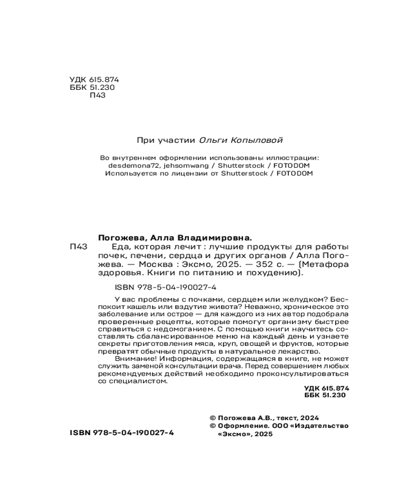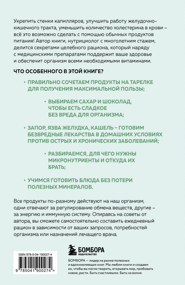 Серия: Метафора здоровья. Книги по питанию и похудению Морковь против запора, кабачки и капуста для выведения токсинов, пшено при анемии — подобрать уникальное природное лекарство можно для любого заболевания, главное — знать, как правильно приготовить. Этими и другими принципами здорового питания поделится в книге нутрициолог с мировым именем, специалист с многолетним стажем, Алла Погожева. Она расскажет, как составить рацион в зависимости от потребностей организма, имеющихся хронических заболеваний и дефицита витаминов. Вы научитесь составлять ежедневный рацион как профессиональный диетолог, узнаете о показаниях и противопоказаниях к употреблению конкретных блюд и продуктов, а также познакомитесь с рецептами целебных блюд для всей семьи. |