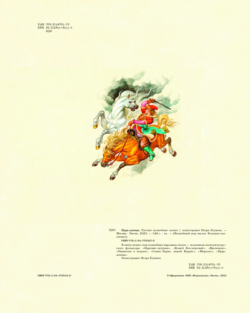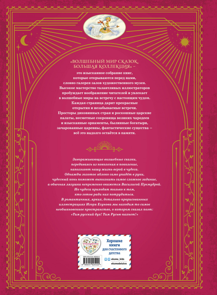 💳 Оплатить за товар можно при получении 🇰🇿 Есть бесплатная доставка по Казахстану 🎁 Копите бонусы с каждой покупки Серия: Волшебный мир сказок. Большая коллекция В этой книге собрано шесть жемчужин из бесценного наследия устного народного творчества — волшебных русских сказок: «Царевна-лягушка», «Кощей Бессмертный», «Кремешок», «Ивашечка и ведьма», «Сивка-Бурка, вещий Каурко», «Морозко», «Царь-девица». Незабываемые, волнующие образы героев изящно и красочно воссоздал в своих иллюстрациях художник Игорь Егунов. С незапамятных времён люди придумывали необыкновенные страны, населяли их чудесными существами и рассказывали диковинные истории об удивительных событиях, происходивших «в некотором царстве, в некотором государстве». Так появились сказки, без которых сегодня мы не можем представить детство. Волшебные или очень похожие на правду, страшные или смешные, народные или литературные — все они увлекали слушателей своей необычностью, загадочностью, передавали от предков и закладывали в сердца бесценные сокровища: вековую мудрость, понимание добра и зла, неписаные правила жизни, — и так формировали уникальный культурный код наций и народов. |