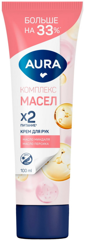 Aura Крем для рук комплексный с маслом миндаля и персика «Питание»