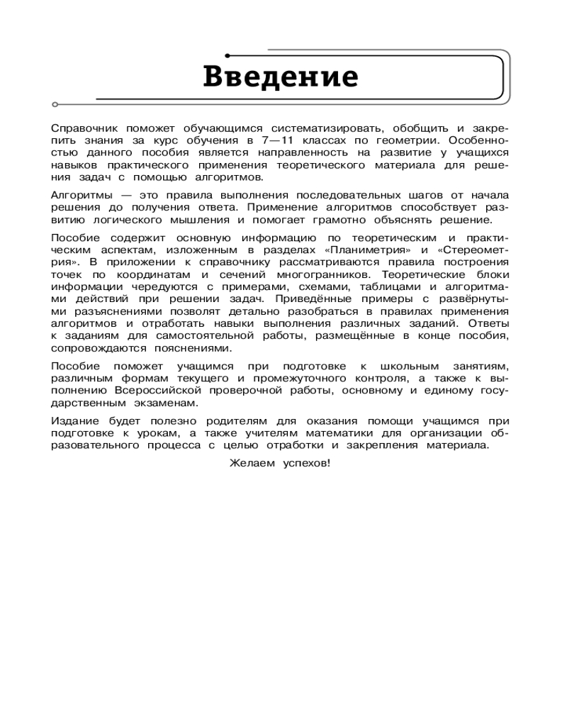 Серия: Алгоритмы решения задач (обложка) Надоело искать в учебниках нужную информацию в море формул и теорем? Вас спасет книга, в которой изложены алгоритмы решения типовых задач по геометрии, изучаемых в 7, 8, 9, 10 и 11 классах. Перед алгоритмом приводится только важная теория по теме с необходимыми правилами и формулами. Сам алгоритм поделен на четкие шаги, следуя которым можно справиться с любой задачей по геометрии. После алгоритма расположены пример решения типовой задачи, а также задания для самостоятельного выполнения. Такой подход к занятиям поможет быстро выработать навык уверенного решения любых типов задач на уроках и контрольных. |