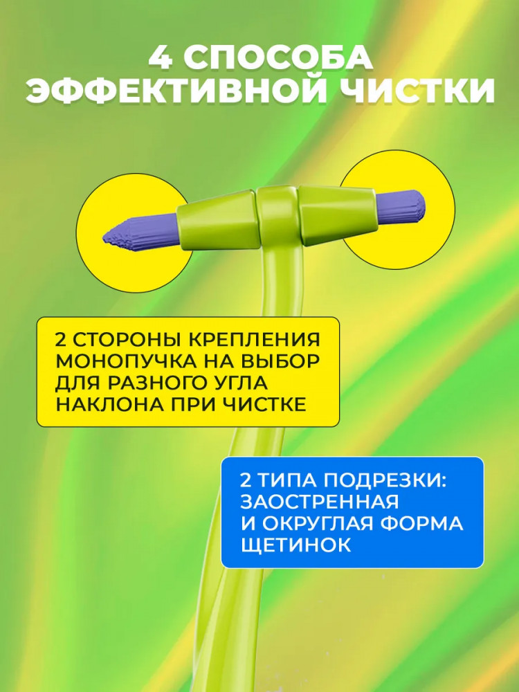 • 4 способа эффективной чистки. Возможность выбора удобной стороны крепления монопучка для разного угла наклона при чистке;