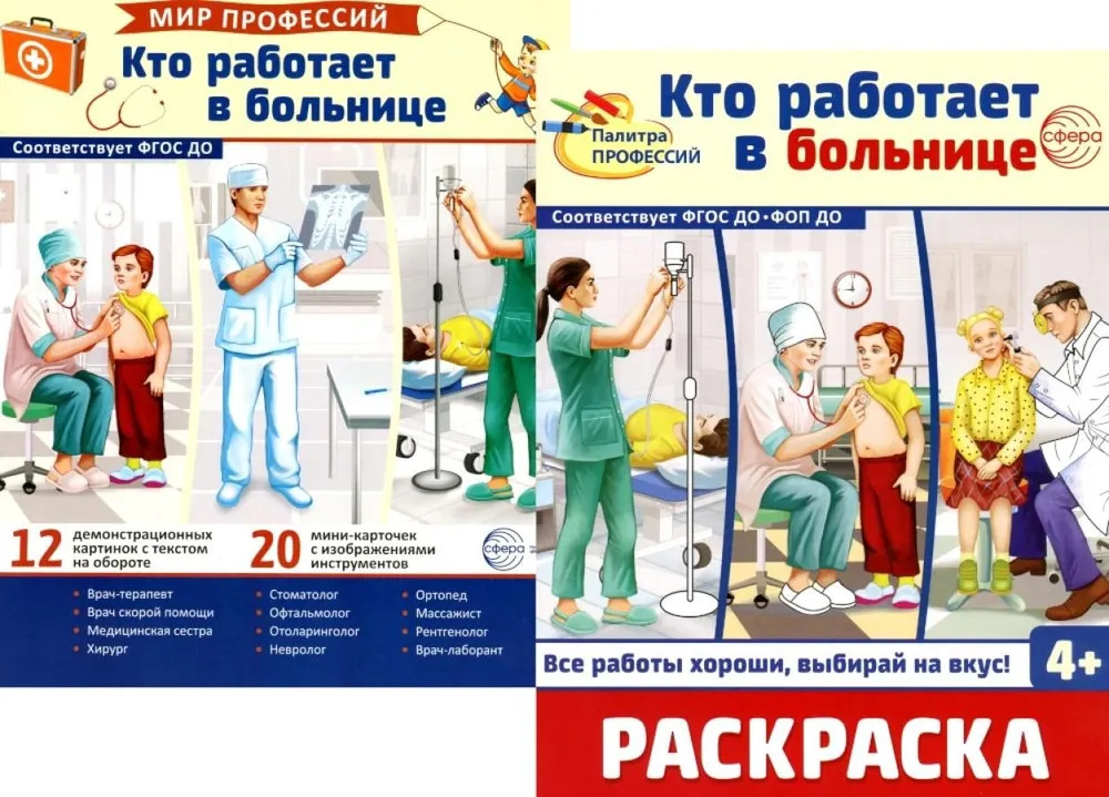 Кто работает в больнице. Комплект из демонстрационных картинок и раскраскиТатьяна Владиславовна Цветкова