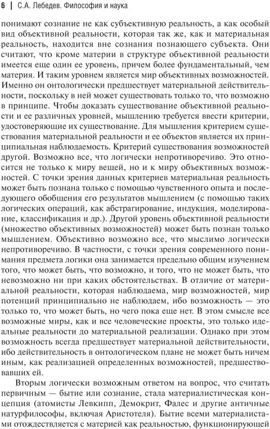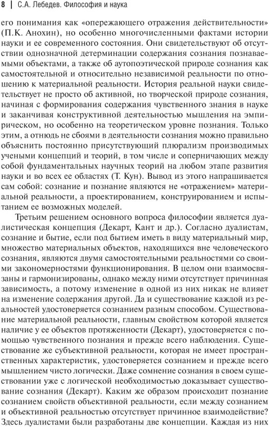 В книге анализируется взаимосвязь философии и науки как разных областей знания со своими предметами и методами. Предмет философии — отношение сознания и объективной реальности, а се метод — теоретический анализ всех лоти-чески возможных вариантов решения этой проблемы. Предмет науки — бытие, его уровни, области, виды: методы: опыт, построение эмпирических и теоретических моделей реальности, их обоснование и применение на практике. Как показывает реальная история науки, при создании моделей реальности и их обосновании ученые всегда опираются на определенные философские представления о соотношении сознания и объективной реальности. Книга рекомендуется всем, кто интересуется взаимоотношением философии и науки как двух важнейших областей рационального знания в культуре, се динамике и современном состоянии. |