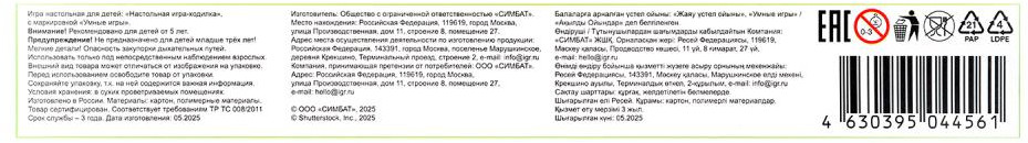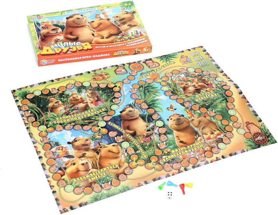 💳 Оплатить за товар можно при получении 🇰🇿 Есть бесплатная доставка по Казахстану 🎁 Копите бонусы с каждой покупки Настольная игра-ходилка «Милые друзья» ТМ «Умные игры» приглашает отправиться навстречу весёлым приключениям вместе с забавными капибарами! Забавные капибары знают толк в настоящих развлечениях и умеют наслаждаться жизнью! Они приглашают вас к себе в гости. Играйте и веселитесь вместе с милыми друзьями! Бросайте кубик, захватывающее приключение ждёт вас! Игра-ходилка ТМ «Умные игры» развивает: ориентацию на плоскости, внимание, визуальное восприятие, логику и социально-коммуникативные навыки. |