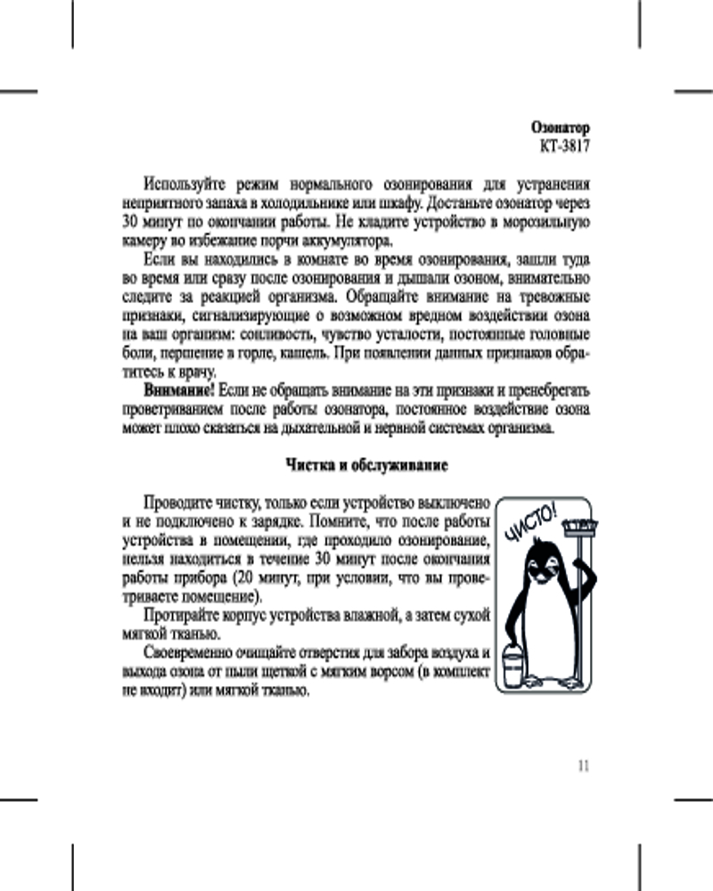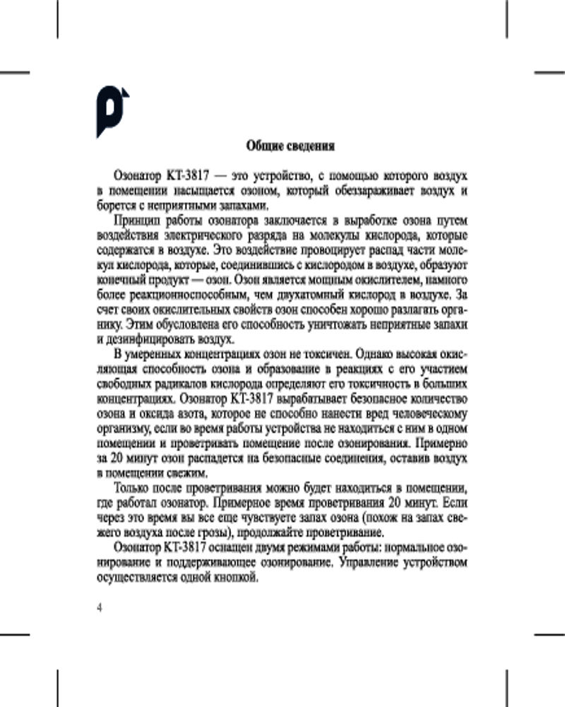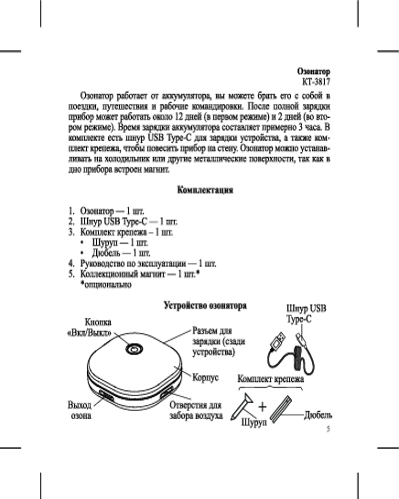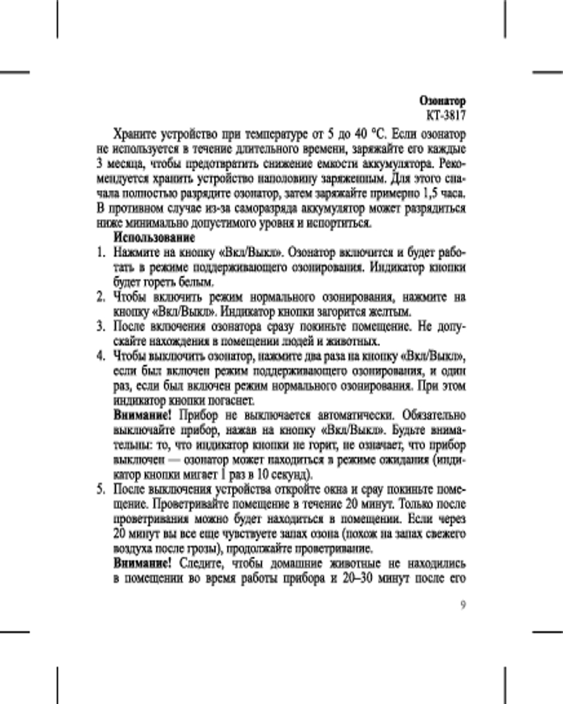 Озонатор КТ-3817 — это устройство, с помощью которого воздух в помещении насыщается озоном, который обеззараживает воздух и борется с неприятными запахами. Озонатор КТ-3817 вырабатывает безопасное количество озона и оксида азота. |